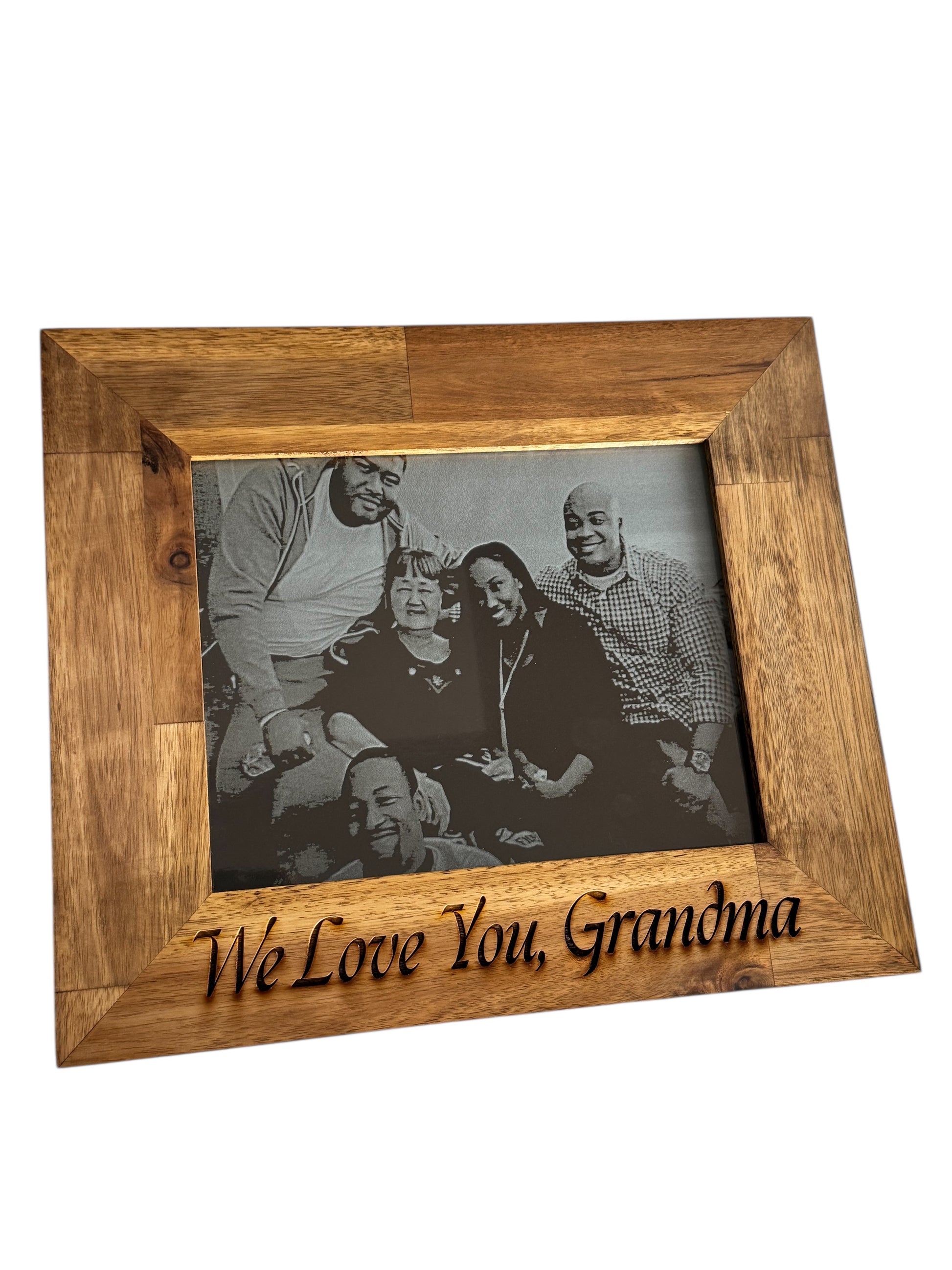 • Custom laser engraved photo (your choice of glass or wood)