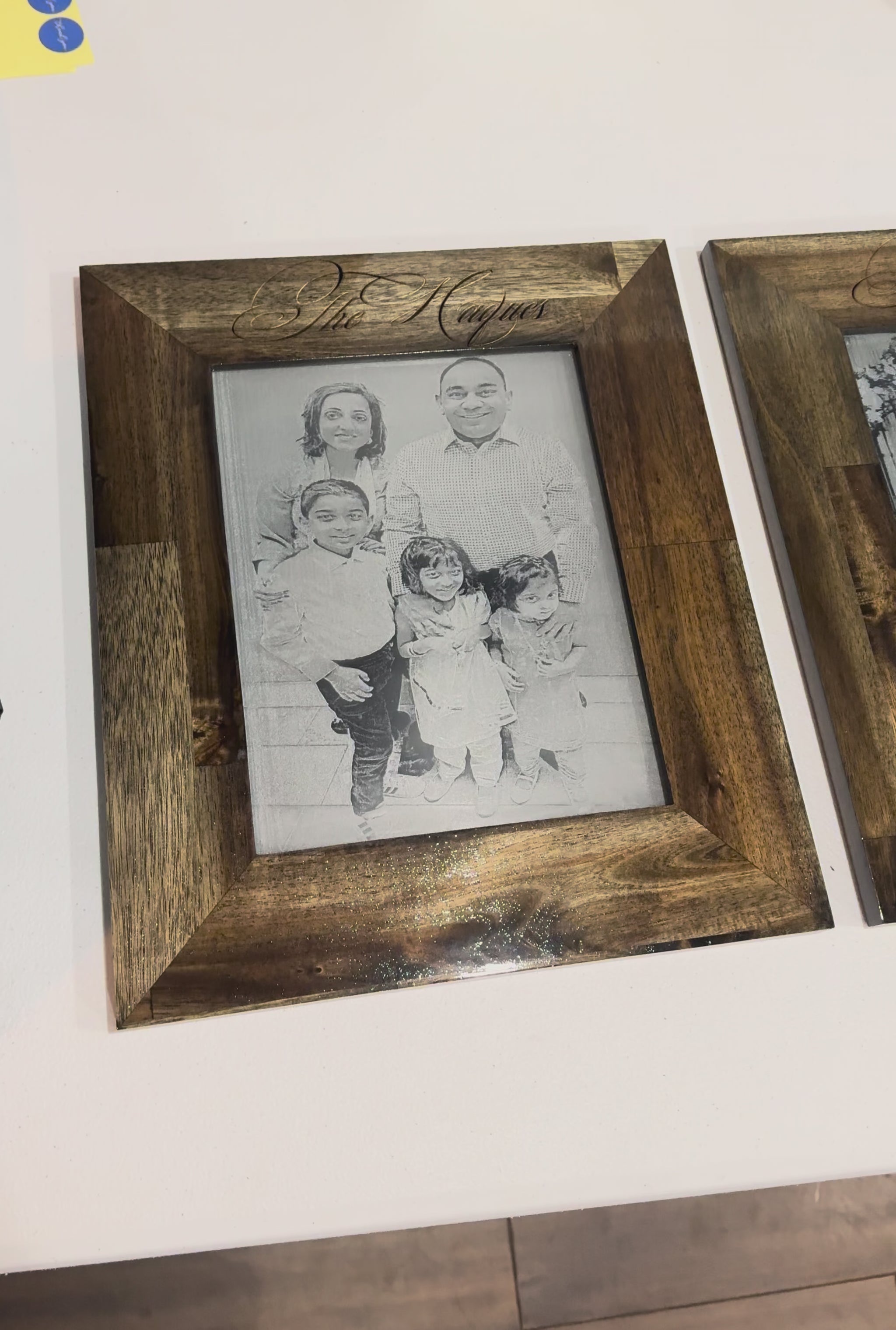 After purchase, we'll confirm your material choice (glass or wood), whether you'd like to add a custom frame, and your design details (photos, names, wedding dates, memorial text, company logos, or personalized messages). We'll send a design proof for your engraved photo.